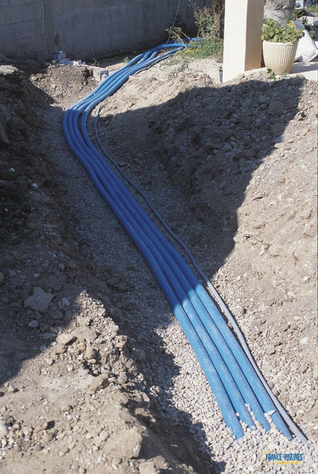 Une fois la coque stabilisée, les tuyauteries et câbles électriques sont reliés au local technique. Ce dernier abrite la pompe, le filtre et éventuellement un système de chauffage ou d’électrolyse au sel.